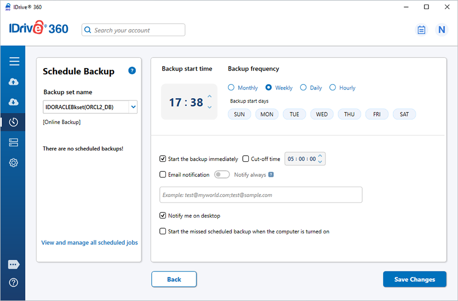 Note: ‘Online Backup’ stores the data in IDrive 360 cloud. ‘Local Backup’ and ‘IDrive® 360 Express™ Backup’ store the data on a local drive.