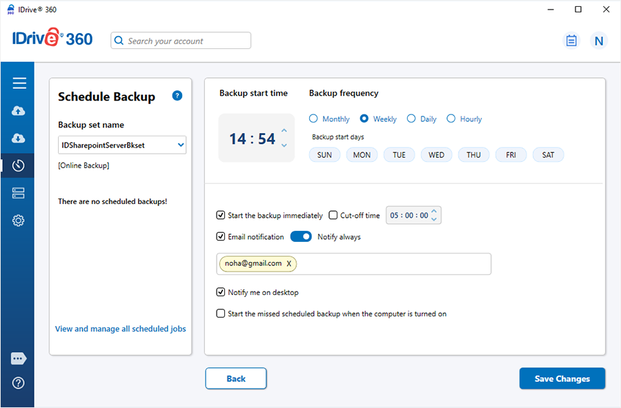 All backup files of your on-premise MS SharePoint server are stored in the folder named ‘IDSharePointServerBkset’.