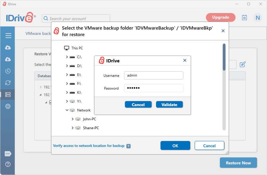 IDrive allows you to restore VMware virtual machines from a network computer using Local Restore.