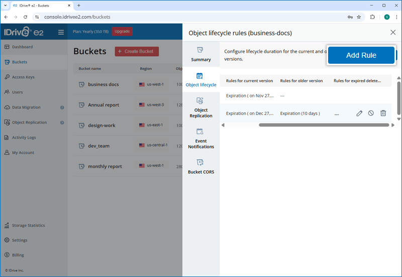 3. Navigate to 'Object Lifecycle' and click 'Add Rule'.