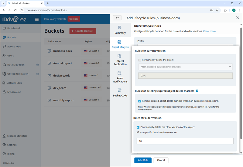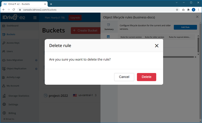 Note: IDrive® e2 does not limit bucket size or the number of objects you can upload to a bucket.