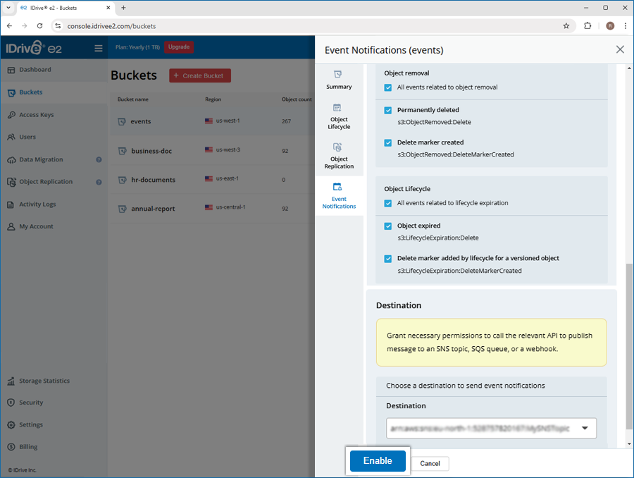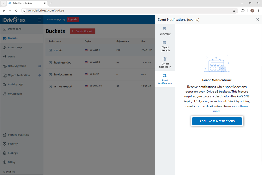 > 'Event Notifications'. - Click 'Add Event Notifications'.
