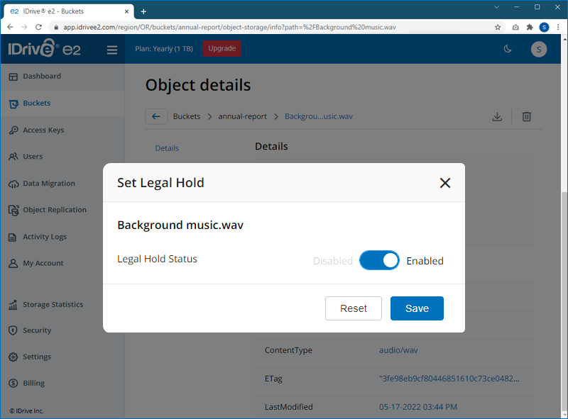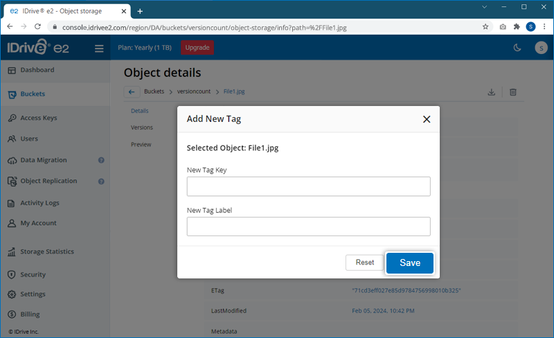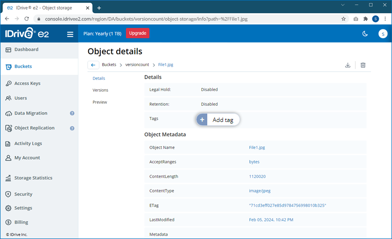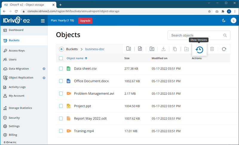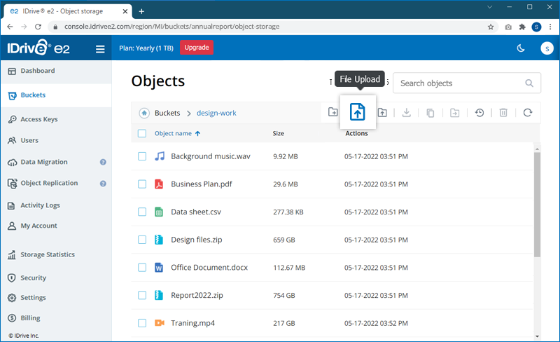 The data you store in your IDrive® e2 account is designated as objects and are assigned metadata and a unique identifier. The size of an object may vary from a few bytes to several gigabytes.