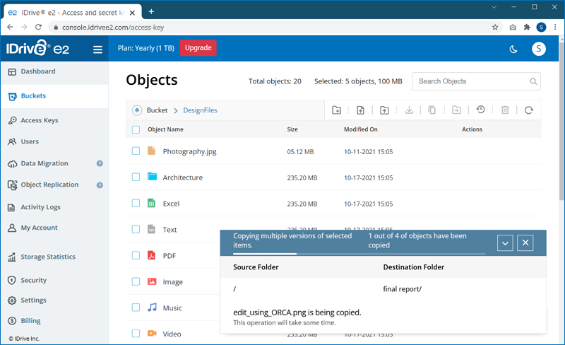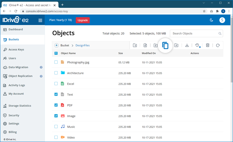 Note: IDrive® e2 does not support copying the entire folder.