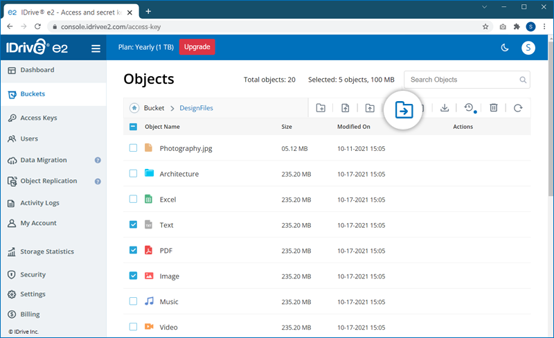 Note: IDrive® e2 does not support moving the entire folder.