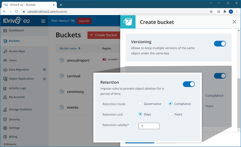 IDrive® e2 supports the following retention modes: