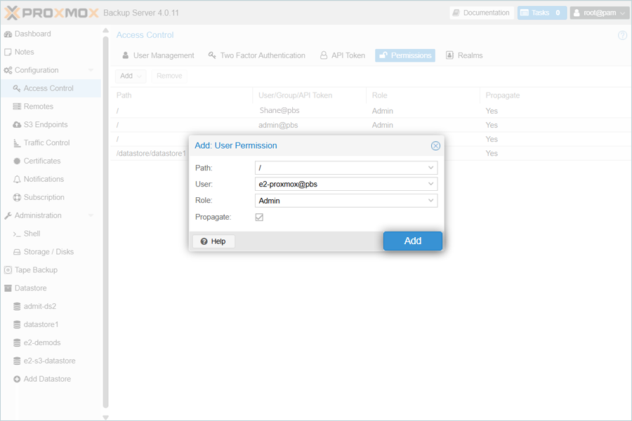(Note: The Username should be the same as mentioned when adding a new user and include @pbs as an extension, as per Proxmox policy. Ex: user@pbs) - Enter your Datastore name as Datastore from the Backup Server (Created in the previous step).