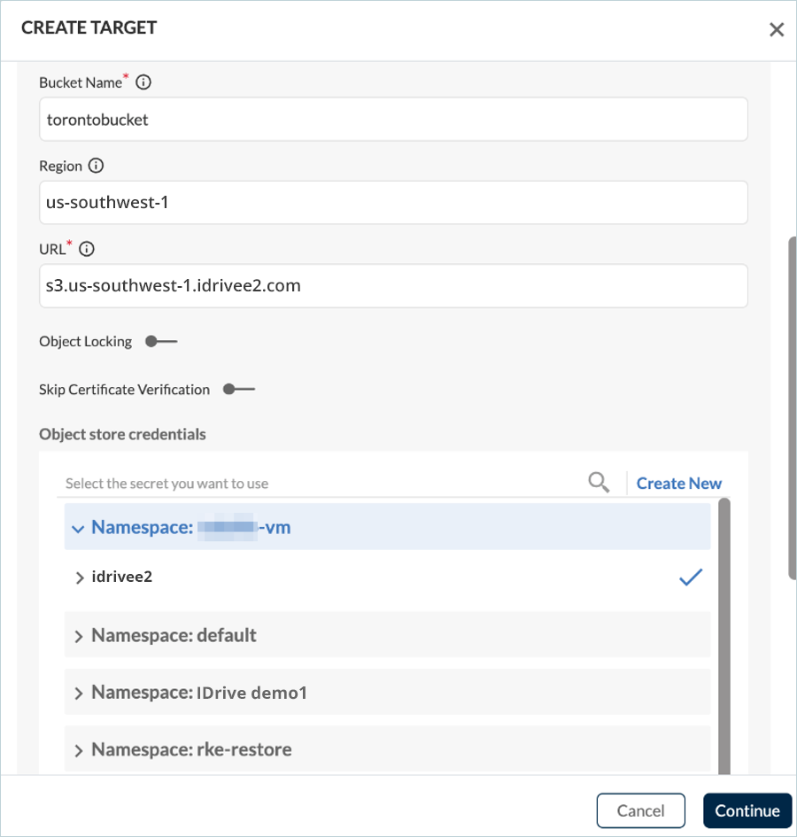 - Create a storage bucket in your IDrive® e2 account to store Trilio backup data.