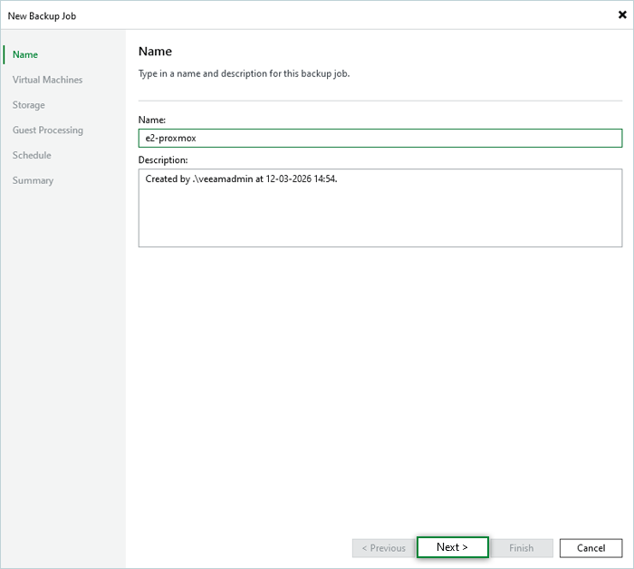 - In the New Backup Job window, enter a name for your Backup Job and click Next.
